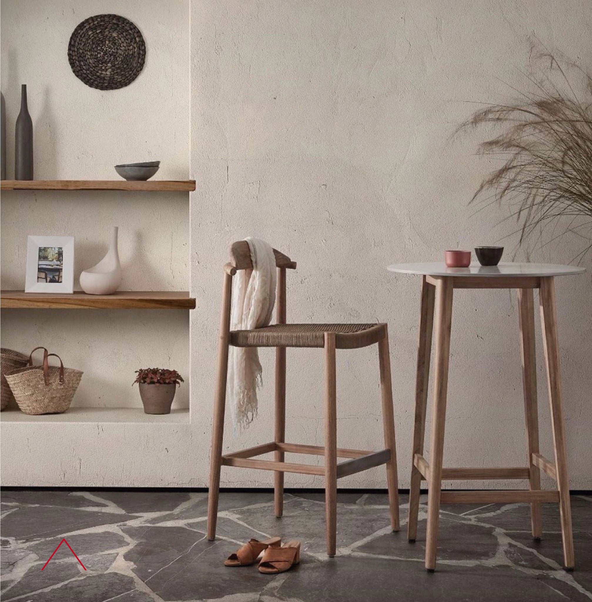 Madera de eucalipto y cuerda.