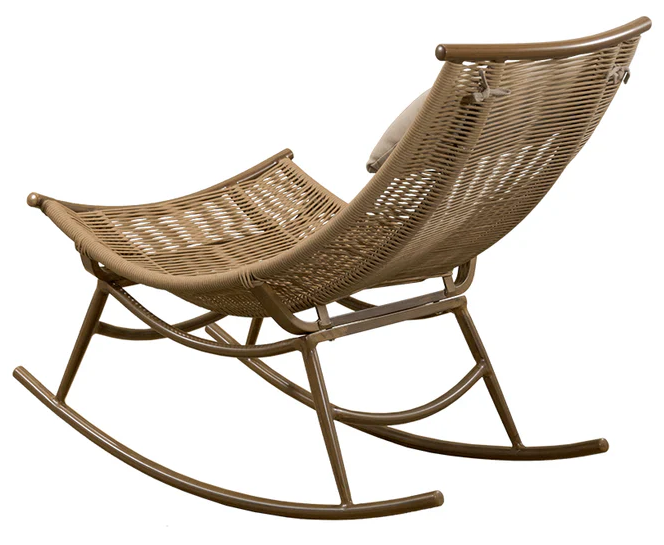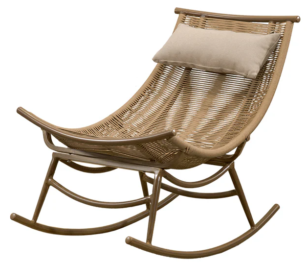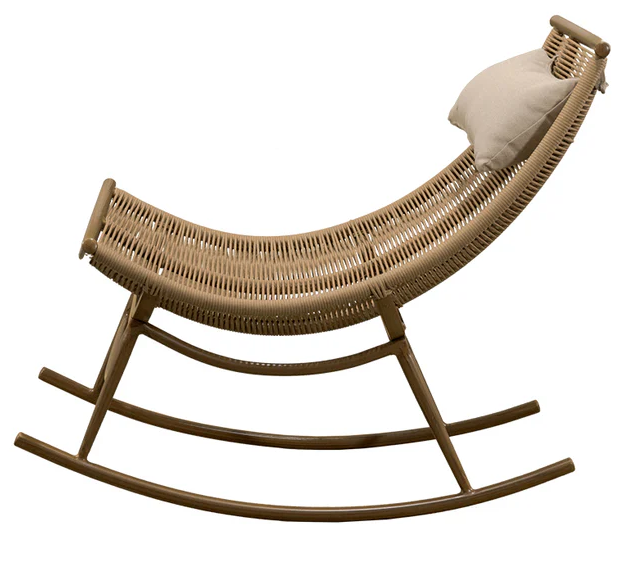 Confort y movimiento en un diseño atemporal. El Sillón Morrigan es una mecedora de exterior fabricada en aluminio con tejido de cuerda color beige, resistente y elegante. Diseñado para uso en intemperie, brinda una experiencia de descanso única, perfecta para terrazas, jardines o áreas de relajación en proyectos hoteleros.